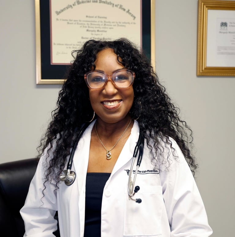 MARGALY MONTILUS, DNP, ANP-BC, is a board-certified Adult Nurse Practitioner with over 20 years of experience specializing in Emergency Medicine, Primary Care, and Chronic Disease Prevention. She holds a Doctor of Nursing Practice degree and is committed to delivering evidence-based, patient-centered care to Adults and Geriatric populations.